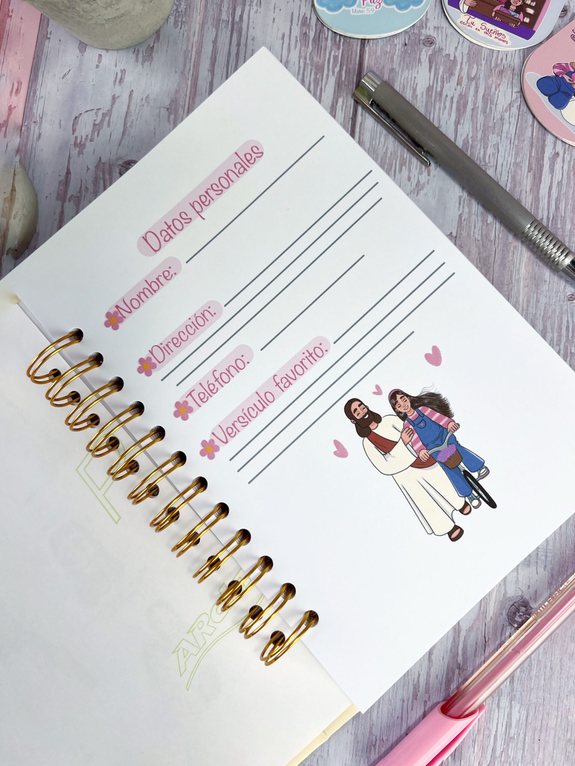 Cada mes está marcado por una ilustración inspiradora que te invita a reflexionar y profundizar en tu fe. Además, incluye una hoja con 8 stickers exclusivos para personalizar y embellecer tus anotaciones.